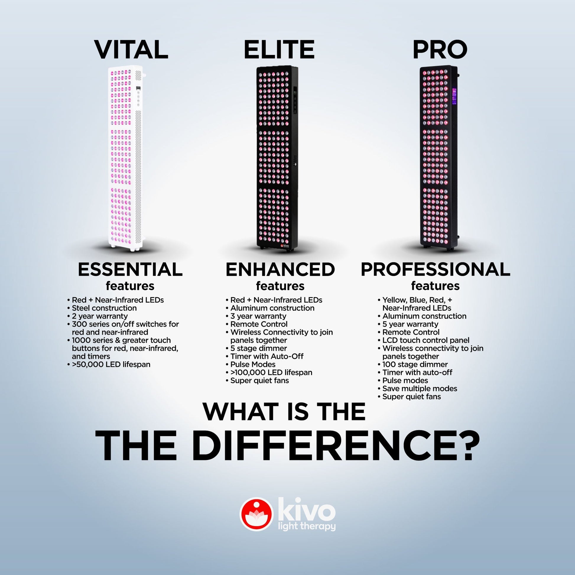 Boasting 210 powerful LEDs, the Kivo Elite 1000 stands out as a leader in light therapy, offering robust and efficient results. Embrace cutting-edge red and near-infrared light technology with this compact, yet potent panel and take your wellness routine to new heights.
